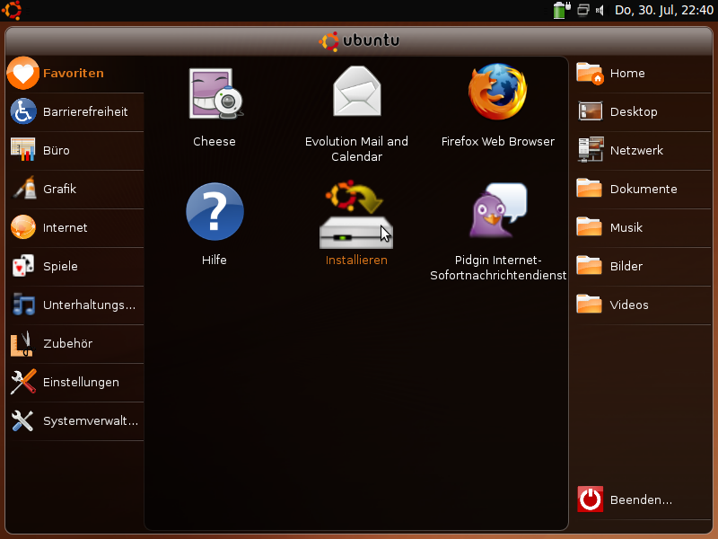 Damit ist Ubuntu fertig eingerichtet und läuft auf dem wunderbaren Seashell-Eee-PC wie geschmiert. Für weitere Informationen zu Ubuntu und seiner Verwendung empfehle ich einen Besuch beim Portal der größten deutschsprachigen Ubuntu-Community: ubuntuusers.de